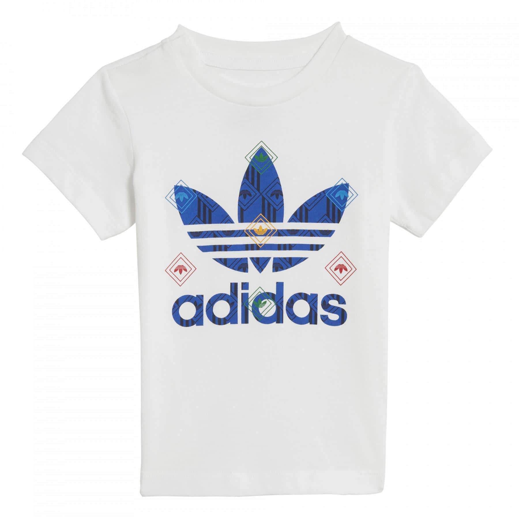 חולצת אופנה אדידס לילדים בצבע לבן עם לוגו מרכזי כחול